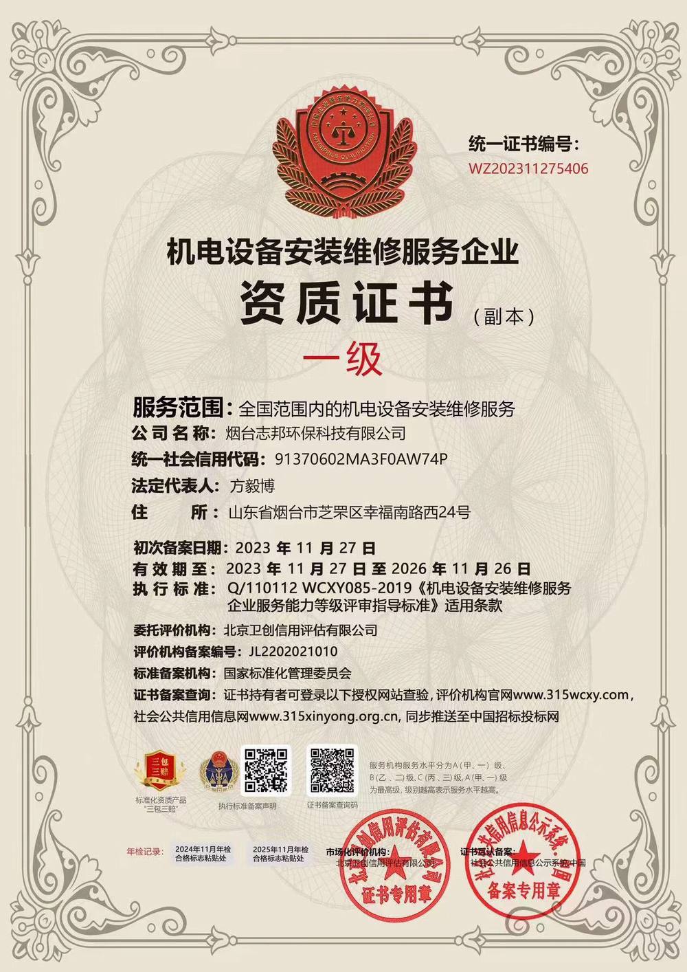 機(jī)電設(shè)備安裝維修服務(wù)企業(yè)資質(zhì)證書 一級(jí)