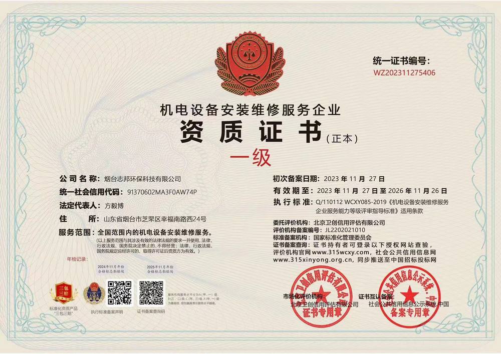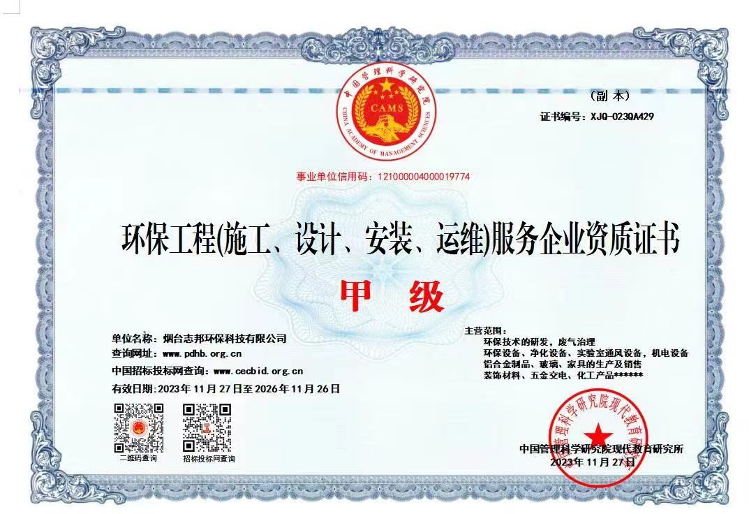 環(huán)保工程(施工、設(shè)計(jì)、安裝、運(yùn)維)服務(wù)企業(yè)資質(zhì)證書